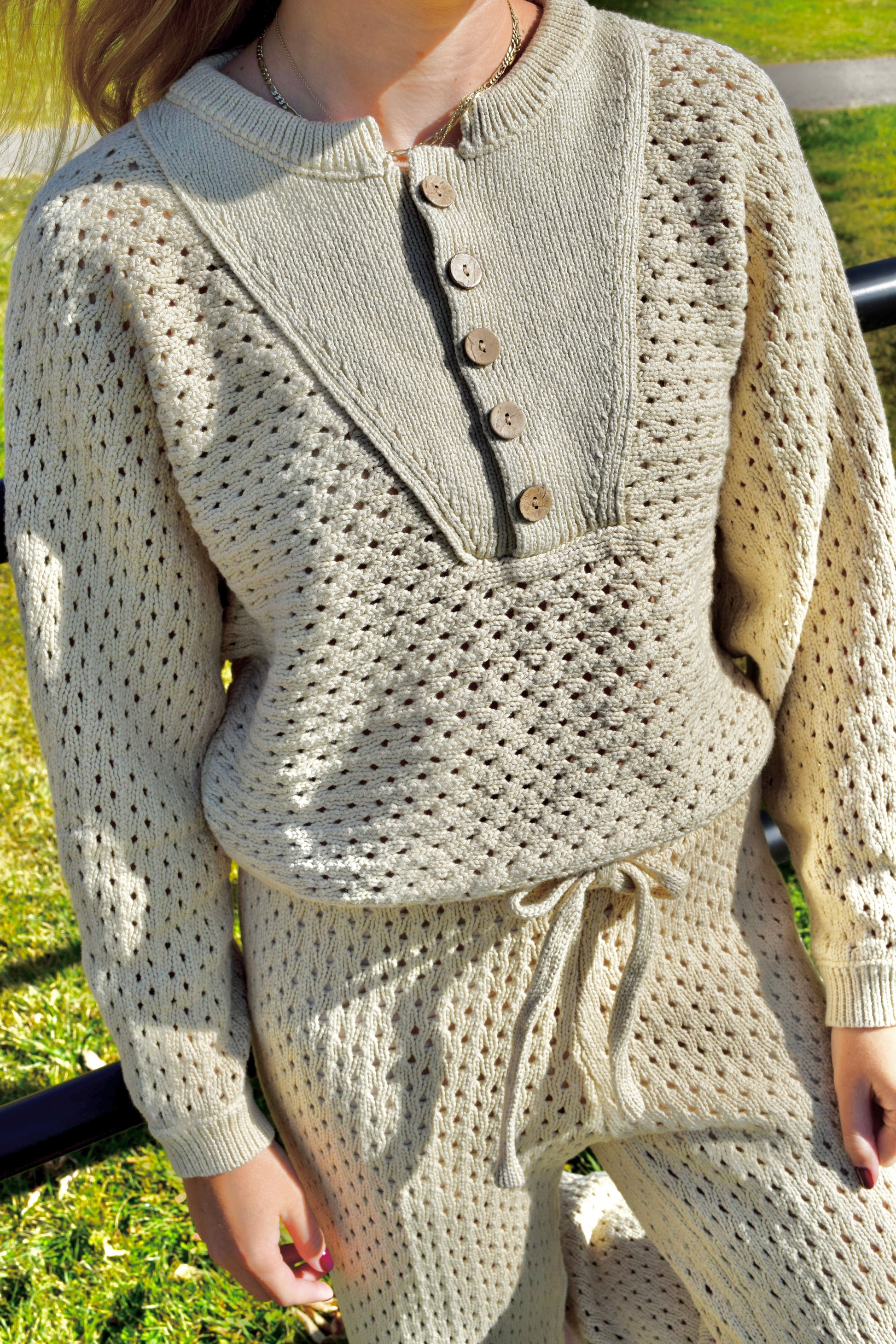 Crafted with a delicate crochet-inspired knit, this set elevates your casual wardrobe with soft texture and an easy fit. The joggers are perfectly lined for added comfort and coverage. They’re equal parts comfortable and stylish perfect for running errands, relaxing at home, or dressing up.